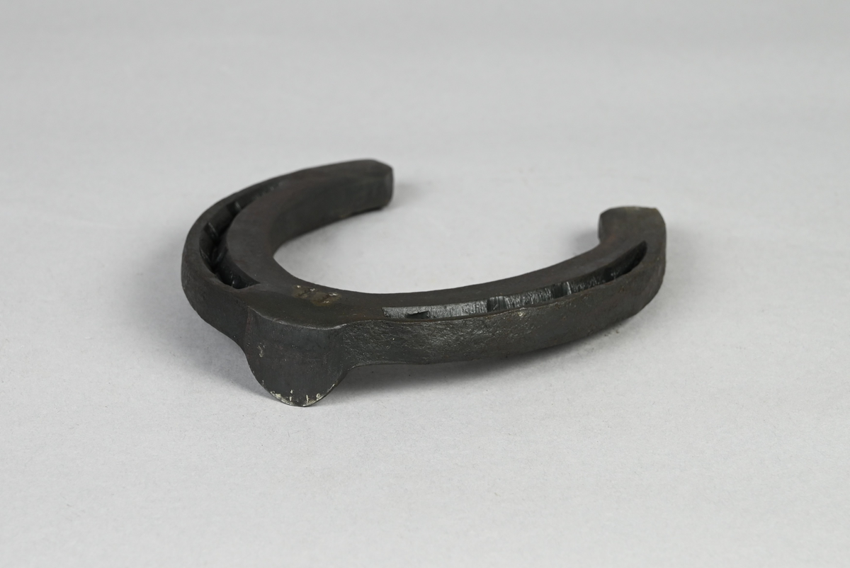 • Prov på hästsko, elfte provet i tillverkningsserie av Slätsko nr. 4. Tillverkade av Broby Mek. Verkstads AB. Märkning på provet med notering: "11".
