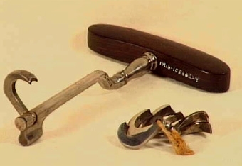 Tandnyckel? Se bilaga till inv. nr. 104857. Specialinstrument med sex lösa krokar som går att byta ut. Krokarna har räfflade insidor samt är slipade längst ut. Mått lösa krokar b. 18, h. 27, tj. 4-7 mm. Tillhör Dr. Litzéns läkarutrustning som förvaras i träkista med inv. nr. 105662:1.