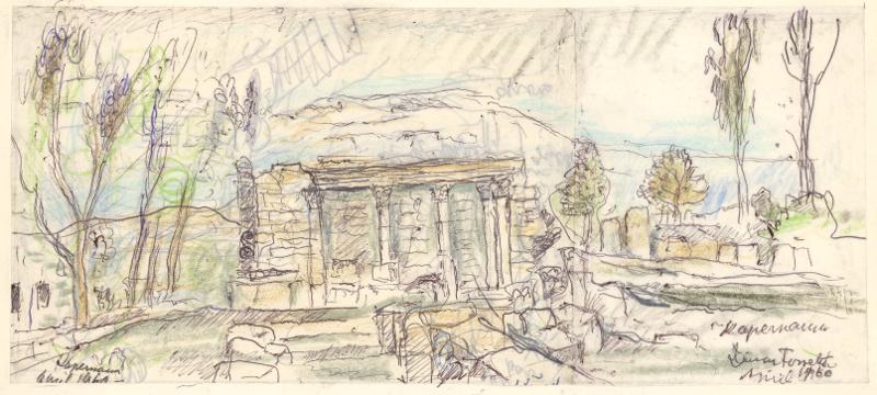 • Kapernaum. Teckning av Einar Forseth, april 1960. Färgpenna, tusch.