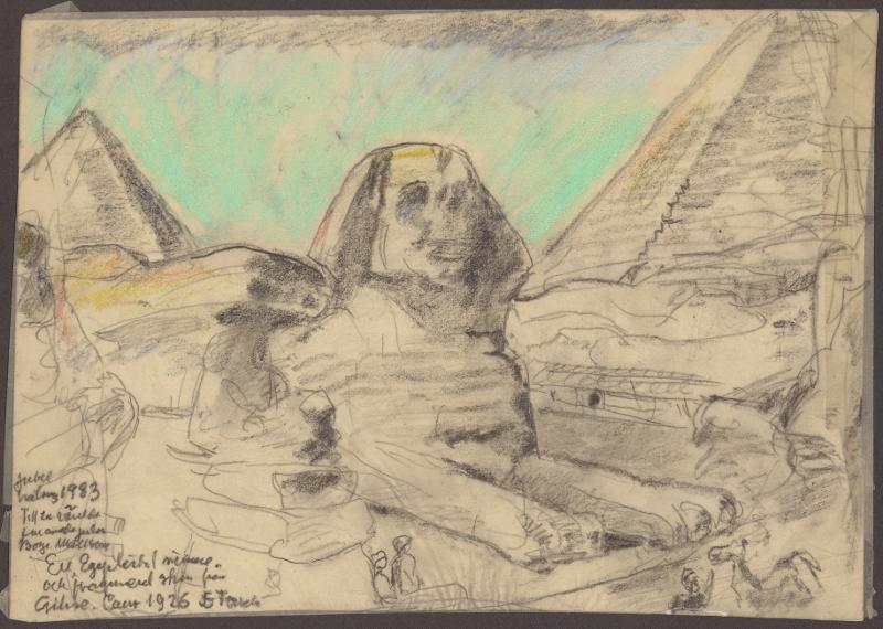 • Sfinxen vid Gize. Teckning av Einar Forseth 1926, krita och blyerts.