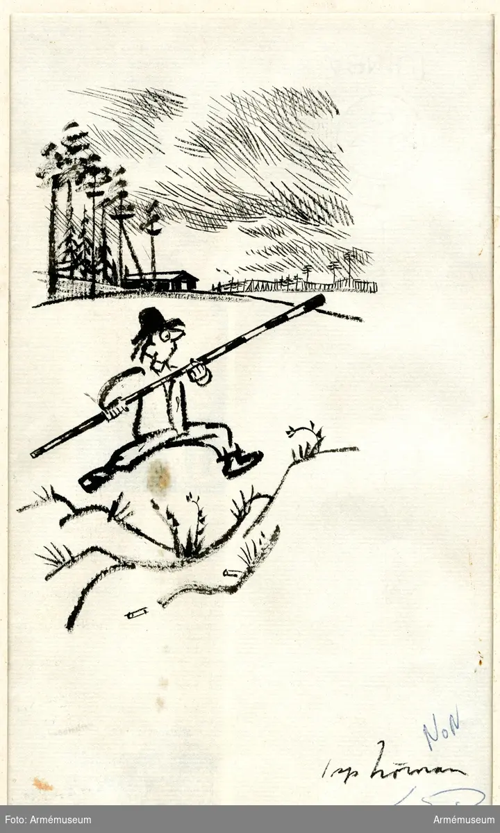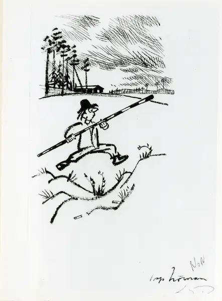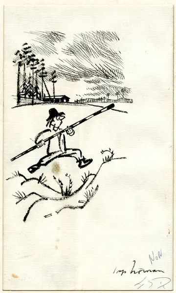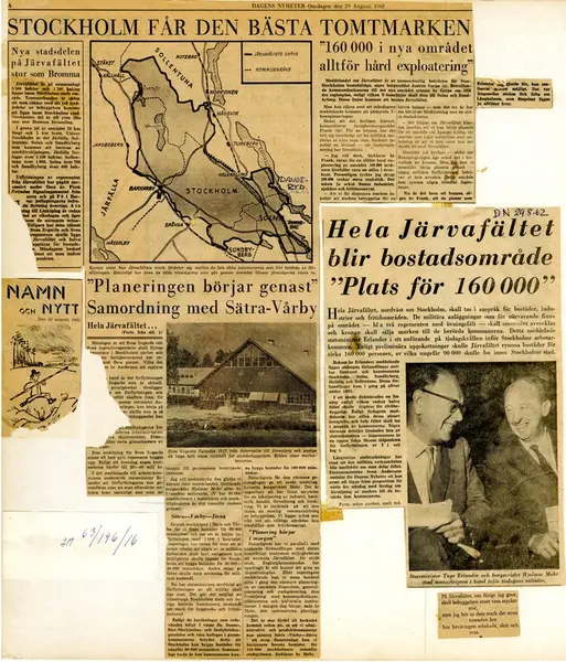Tuschteckning av Björn Berg, "Om Järvafältet". Namn och nytt i Dagens Nyheter 30.8 1962.