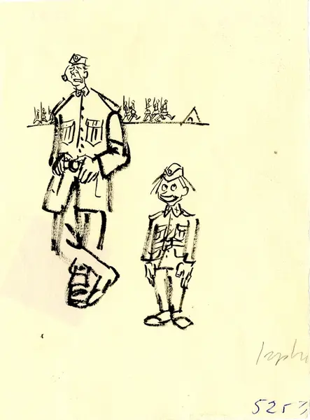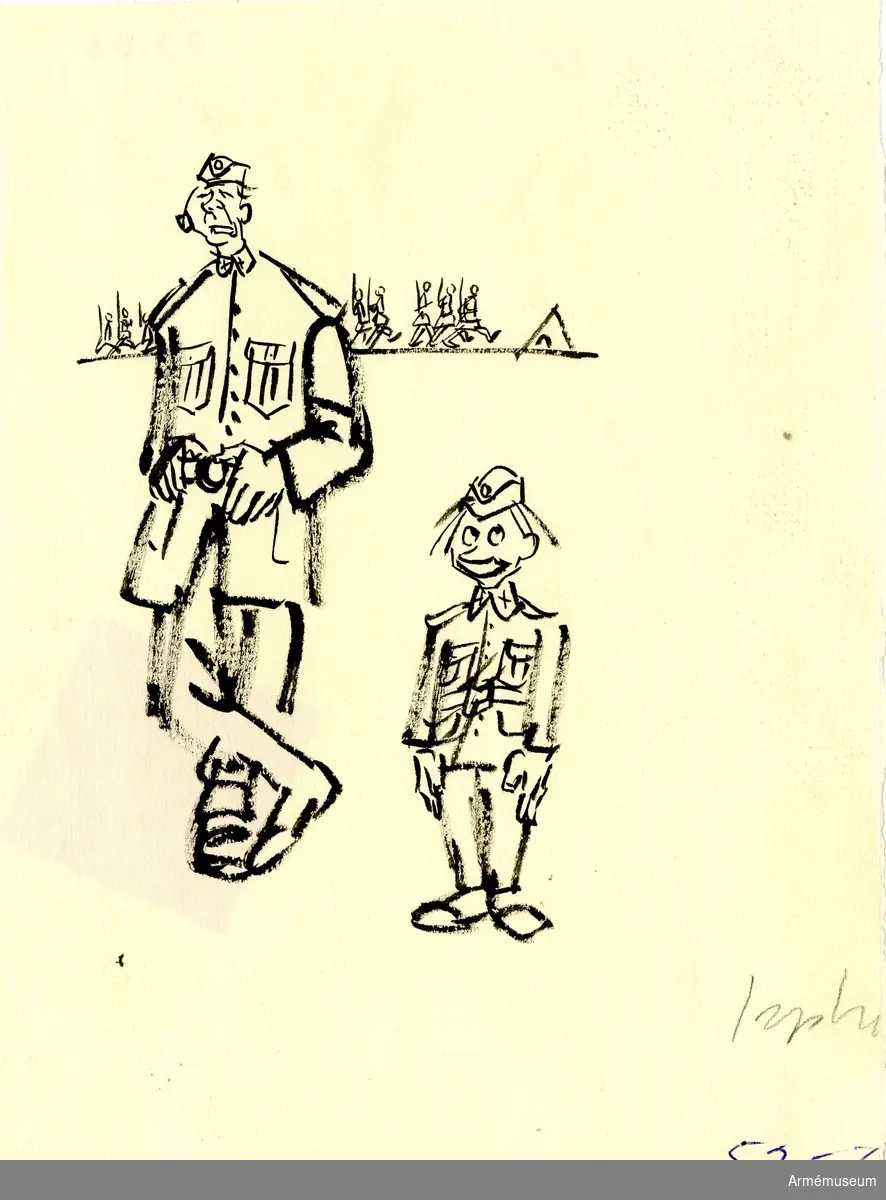 Grupp M I.Tuschteckning av Björn Berg "Repgubbar". Införd i Dagens Nyheter 21.12 1962.