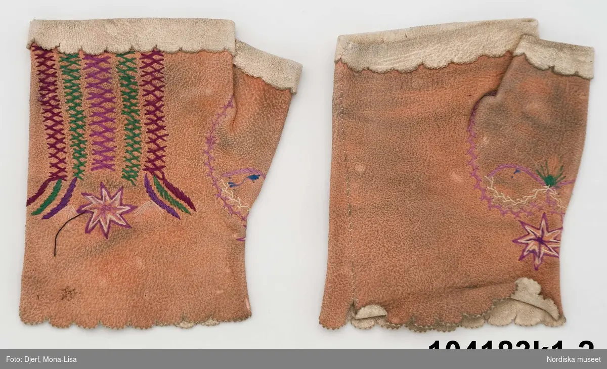 f: "Ärmarna klippta för sig, försedda med ärmspjäll samt mönsterväfda kvalr i rödt och hvitt; sammanhålles medelst röda ylleband."