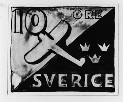 Ej realiserade förslag till frimärke Nattpostflyg, utgivet 9/5 1930. Konstnär: Einar Forseth. Valör 10 öre.