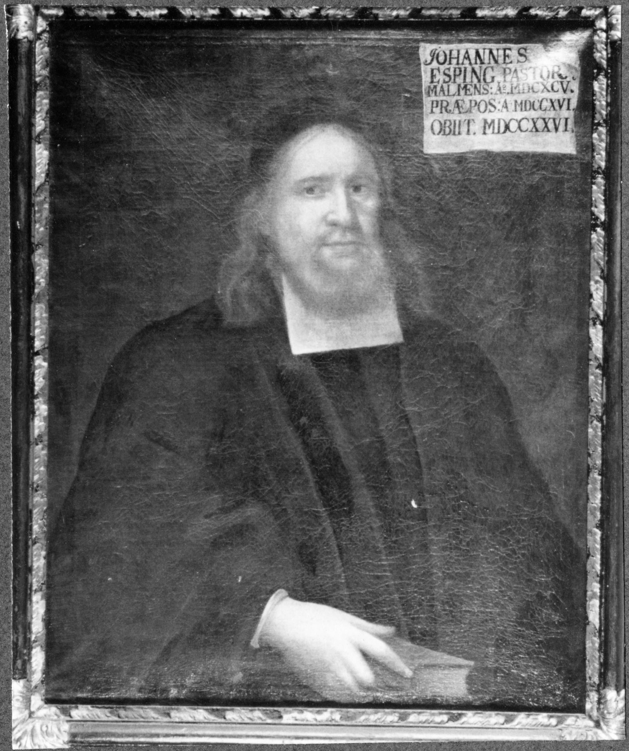 • Porträtt föreställande Johannes Esping, kyrkoherde i Stora Malm 1695-1726.