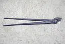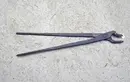 Grovsmidd tång med fyrsidiga, mot ändarna avsmalnande och rundade skänklar, ihopnitad med nit med stora, runda huvuden. Parallella, ej mötande tänger, den ena längre, L-formig, den andra kortare , s-formigt nedsvängd mot den första.