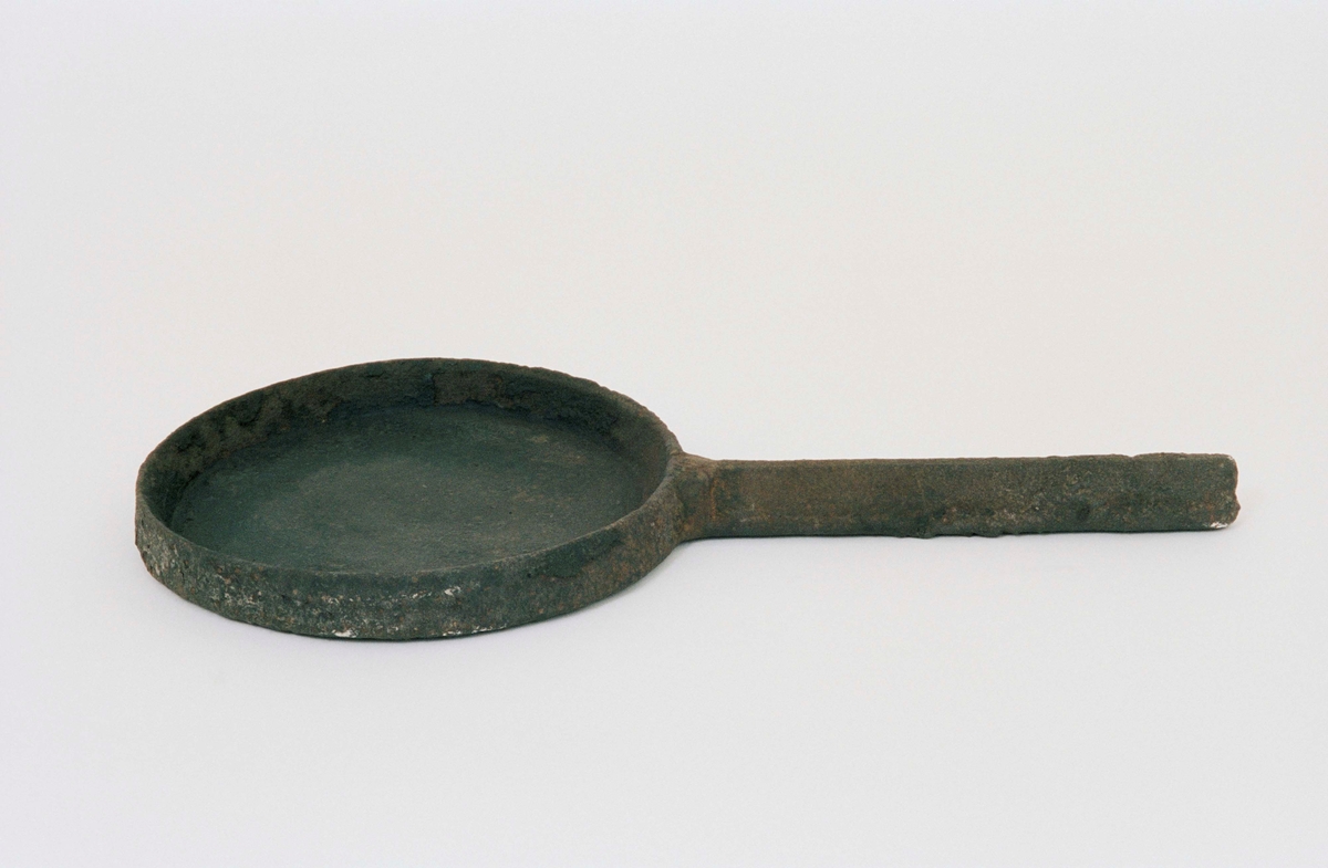 • Pannkakslagg av gjutjärn, panna och skaft i ett stycke.