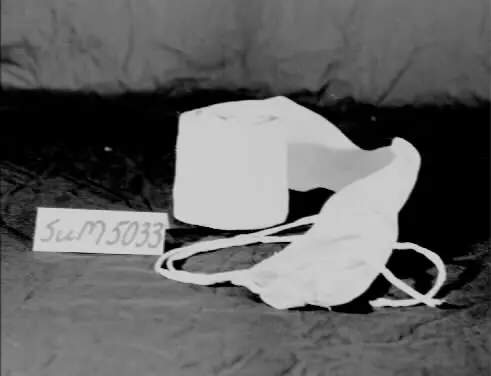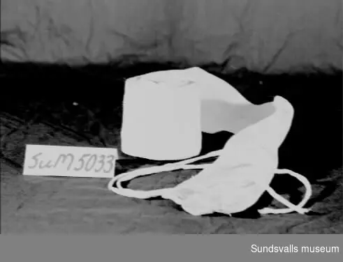 Linda för spädbarn i vitt mönsterstickat bomullsgarn med två bomullsband i ena änden. Lindan är, enligt givaren, troligtvis tillverkad av Christina Näsholm, givarens mormor, född i Borgvattnet, död i Bräcke 1930. Hon försörjde sig som stickerska i Bräcke och hade egen stickmaskin. CN har tillverkat barnkläder till givarens mor, Ella Pettersson (Näsholm).