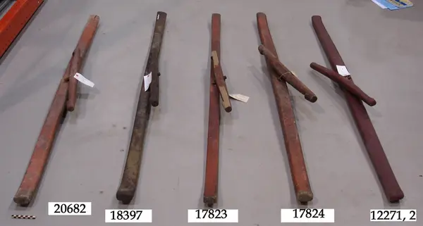 • Ok för vattenså av ekträ? Består av två stänger, en lång och en kort, rörligt förenade medelst två krampor på mitten av stängerna.