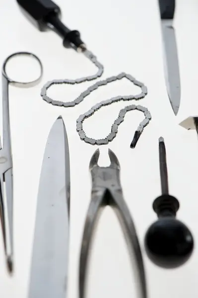 2 torniketter med pelotter. 1 handrephin, 1 cm diam.