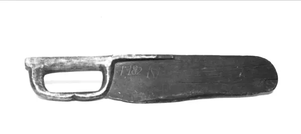 • Skäktkniv av trä. Inristat: 1782 och bomärke eller initialer.
