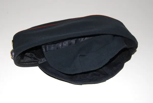 Båtmössa av vintermodell med nerfällbart öronskydd och vaddstickat foder. Mörkt stålgrå med röd passpoal för I 4 och P 1. Framtill agraff bestående av mössknapp m/1865-1960, silverfärgad metallgalon för P 1 (Göta livgarde) och kokard av matt guldfärgad metall m/1865-1960.