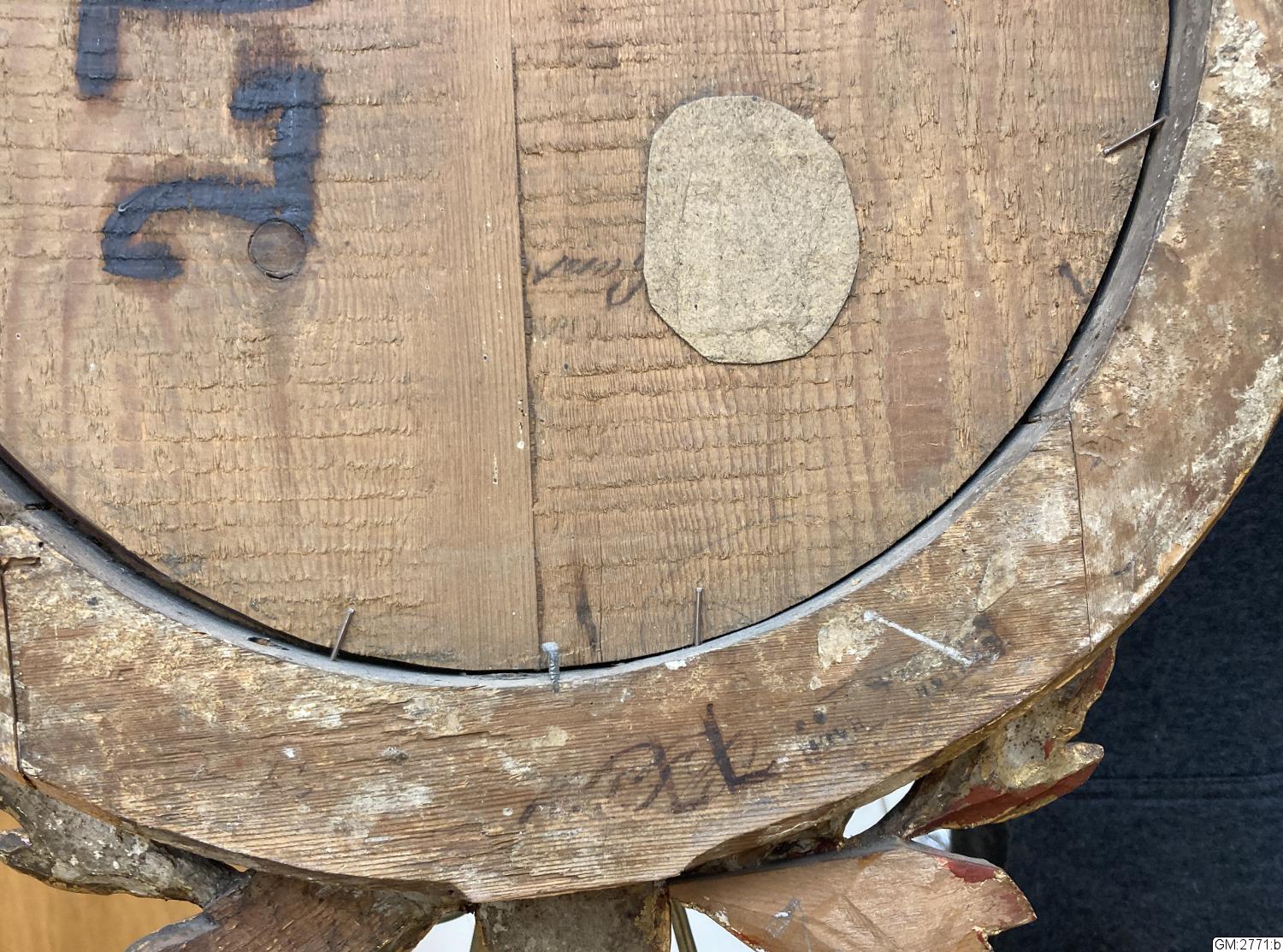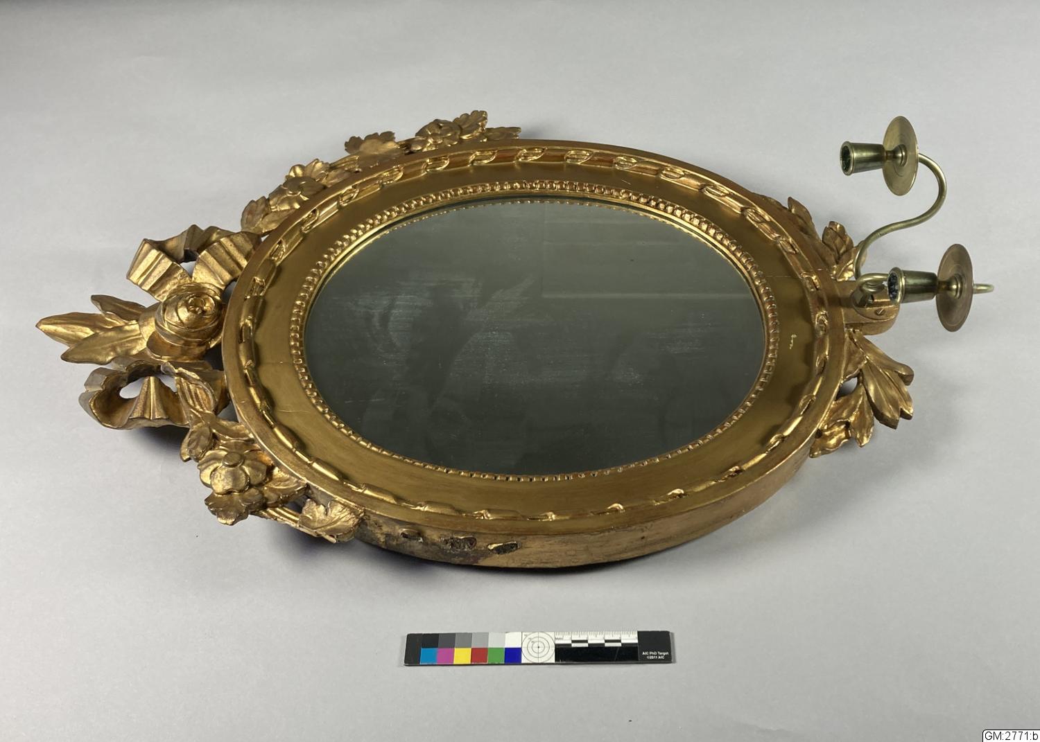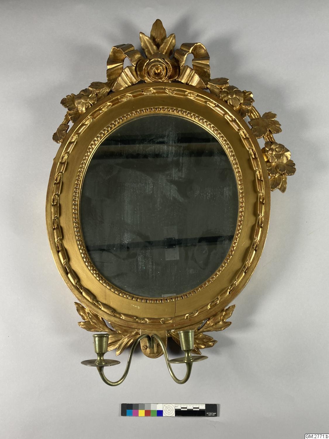 • Ram med bemålade ornament. Detaljer i pastellage. Två ljuspipor.