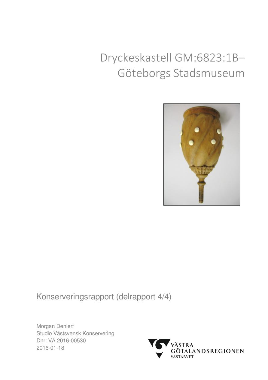 konserveringsrapport, rapport, Dryckeskastell GM:6823:1B – Göteborgs Stadsmuseum - Konserveringsrapport (delrapport 4/4)