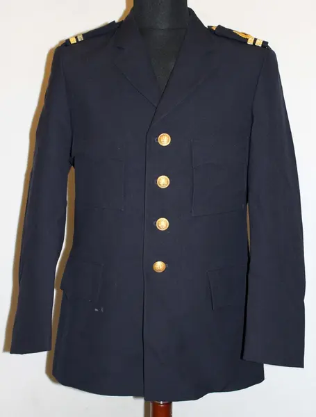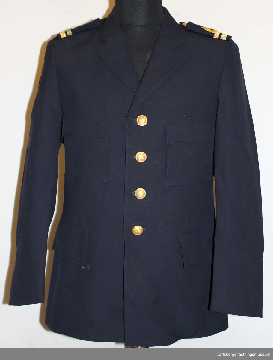 Kavajen är enkelknäppt med 4 st guldknappar. Kavajen har nedvikt krage med slag och 2 st bröstfickor med markerad mittbälg och faserade lock, samt 2 st sidfickor med lock. Fasta axelklaffa...