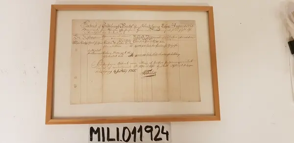 • Dokument från 1715, inramat bakom glas i sentida träram.