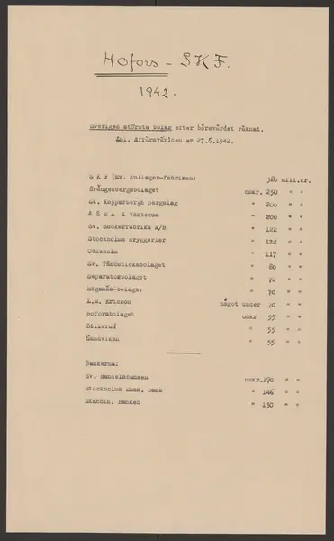 Hofors järnverks kronologi. Ur Carl Sahlins bergshistoriska samling.
