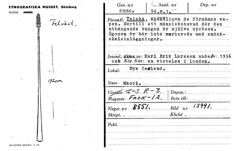Lokal: Nya ZeGland. , Magasin: Fa edt--- /4. - Depon. : Byte till: n:r Dep. n:r 56.8,.1.' de förnämas va- pen. Nertill-ett människohuvud där den uthängande tungan år själva spetsen. --kottn-är'här-inte-markerade-med—snät - _skalsinläggninger-. Inåra, .1212aunv: Kati ltik undezh:1956 och Köp från: en vistelse i London.- Stam: Negat. n:r 8TS7 Bild n:r i3997. Skiopt. „ Kliche „ Publ. ETNOGR. ETNOGRAFISKA MUSEET, Göteborg den. -n:r I 85066« ELANDERS.950502.11.53. F&erng: [ocr]Stäng