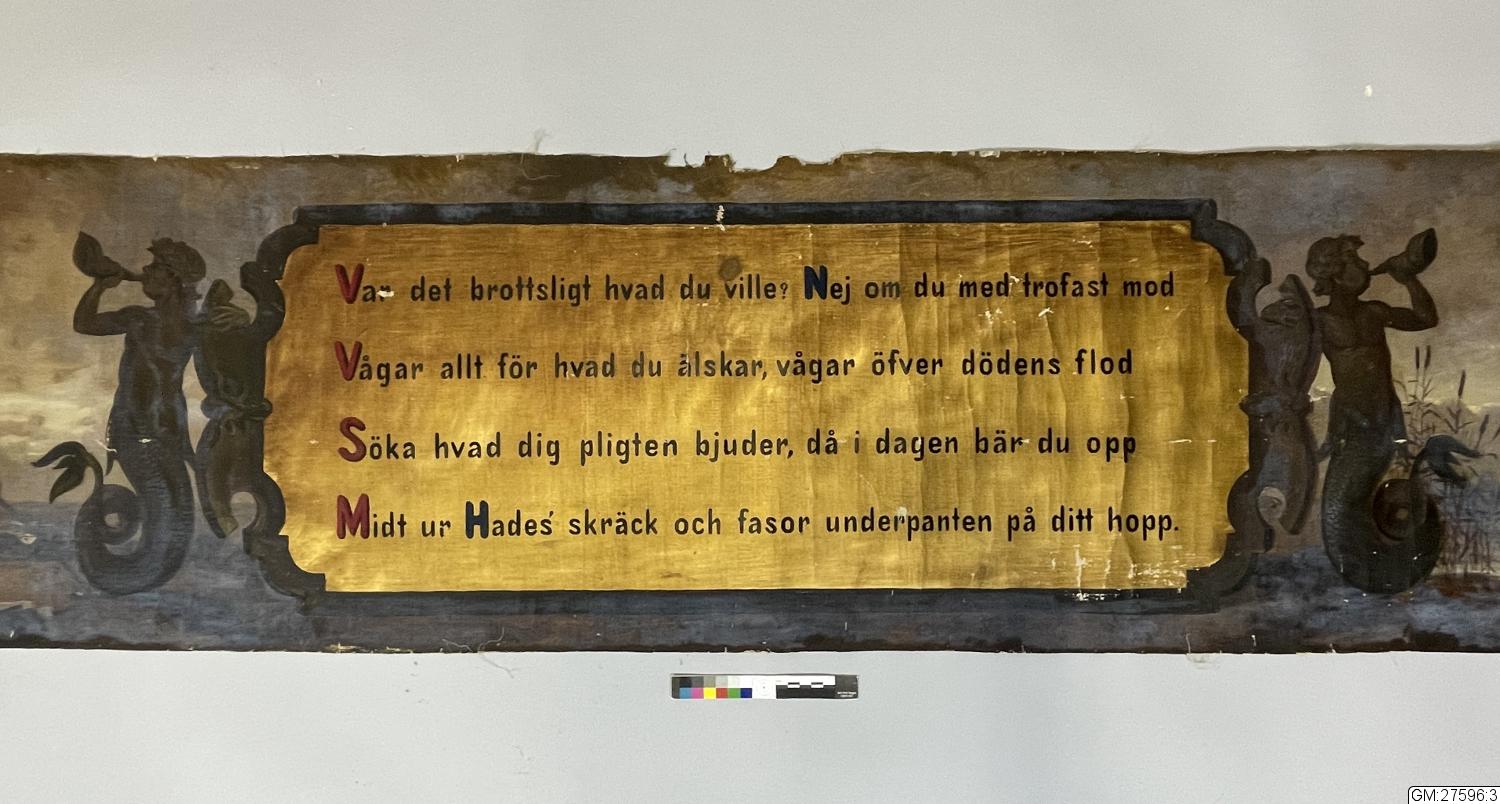 "Var det brottsligt hvad du ville? Nej om du med trofast mod Vågar allt för vad du älskar, vågar öfver dödens flod Söka hvad dig pligten bjuder, då i dagenhär du opp Midt ur Hades` skräck och fasor un...