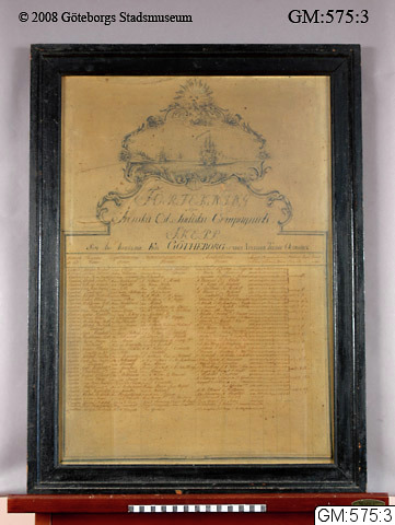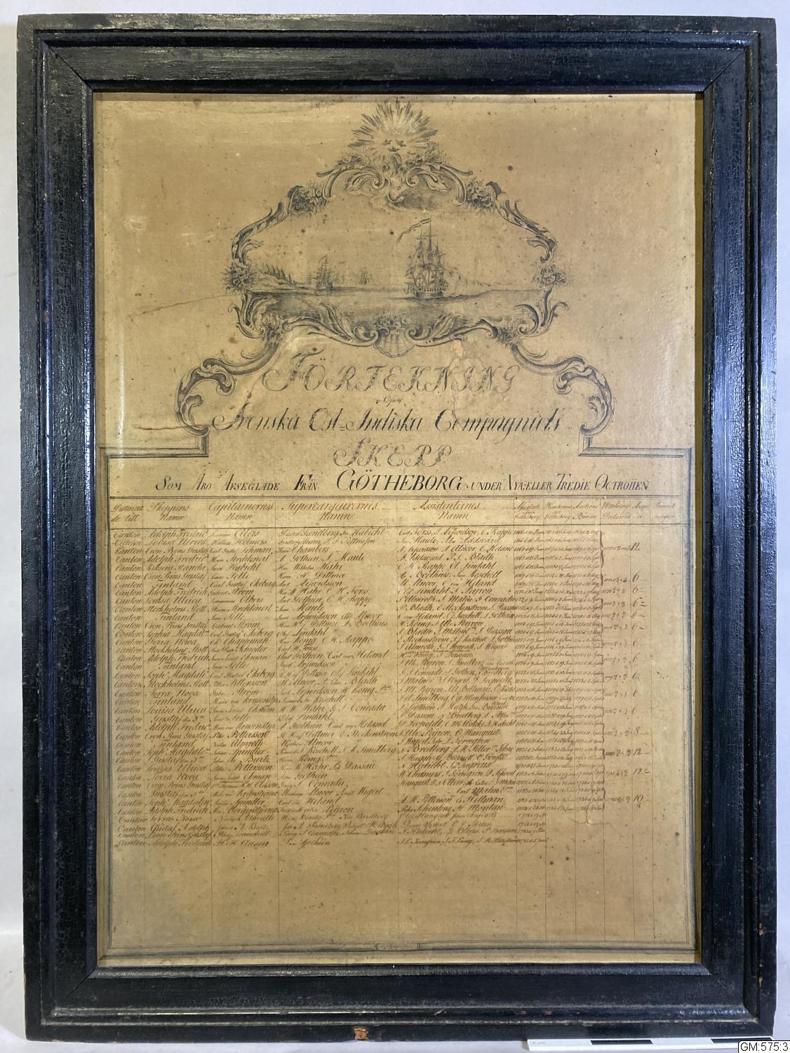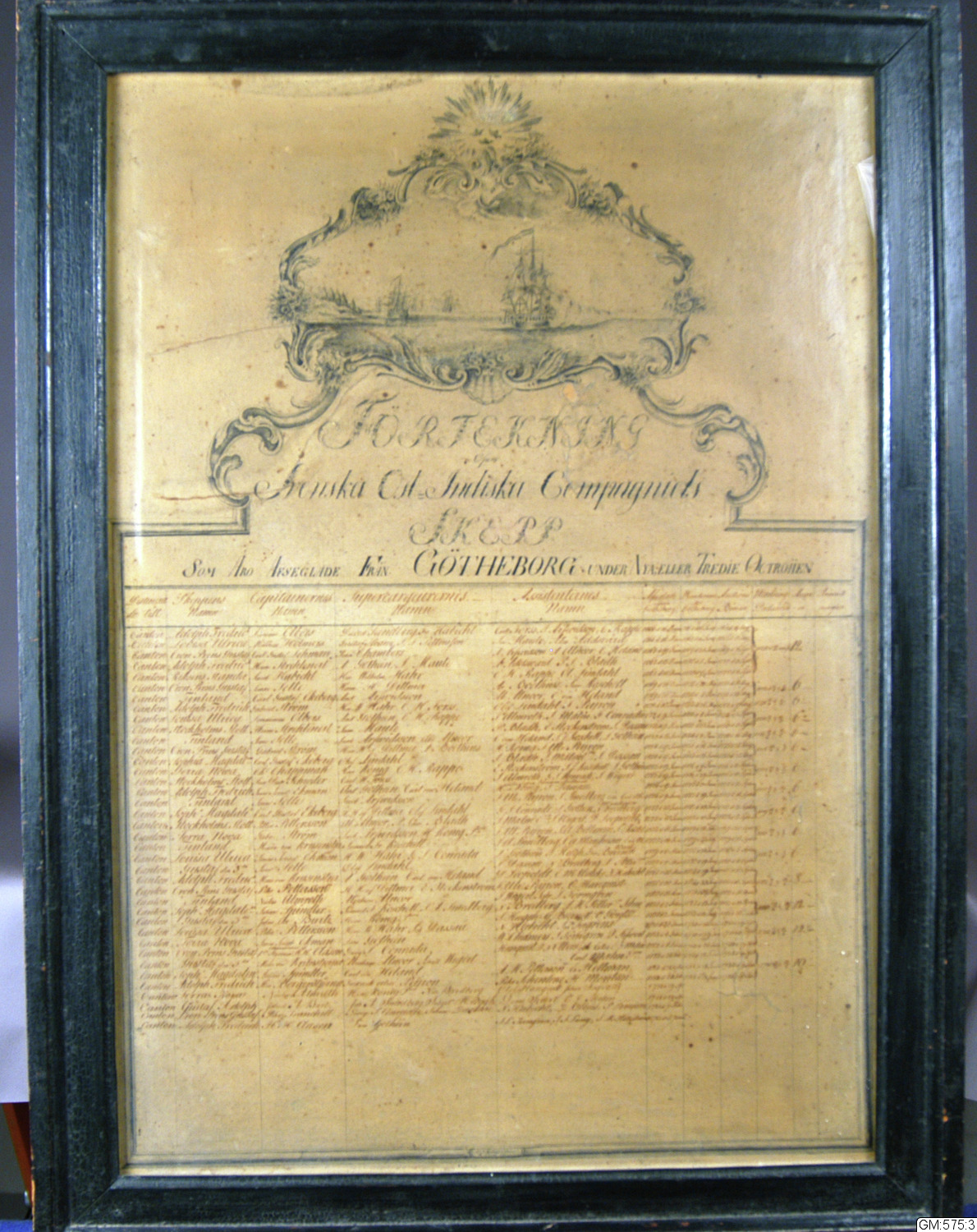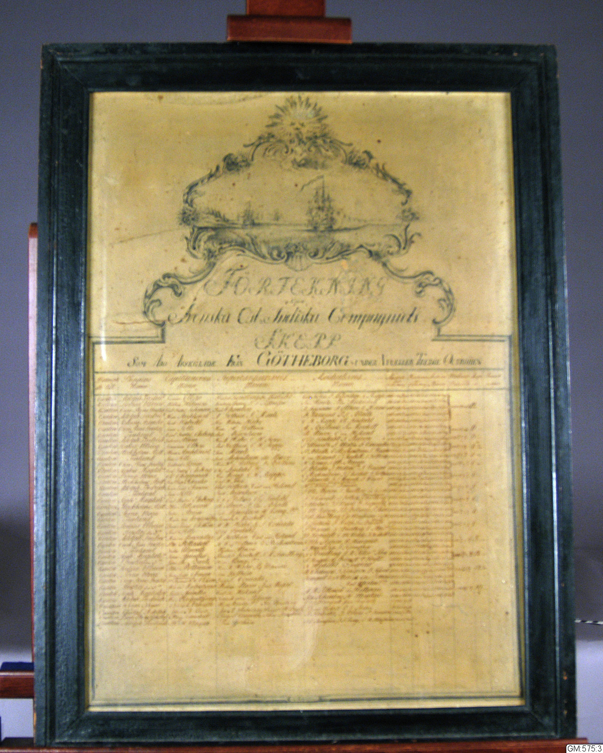 förteckning "Förteckning öfver Svenska Ost-Indiska Compagniets skepp som äro afseglade från Götheborg under Nya eller Tredje Octroiiern", 1766-86. GM:575:3