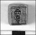 • :7, en av åtta st olikstora stämplar med olika motiv med samma nummer, 4-kantig, smalnar av upptill.