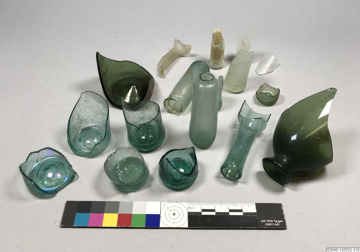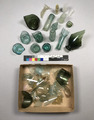 • skärvor från olika små flaskor