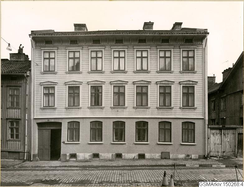 • Skolgatan 36, fasaden. Huset byggt 1879. Foto Staffan Westergren, januari 1970.