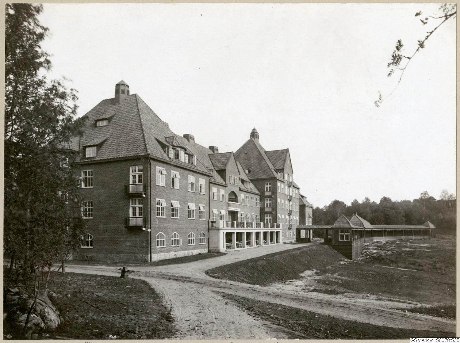 • Det nybyggda Renströmska sjukhuset, baksidan sedd från parken.