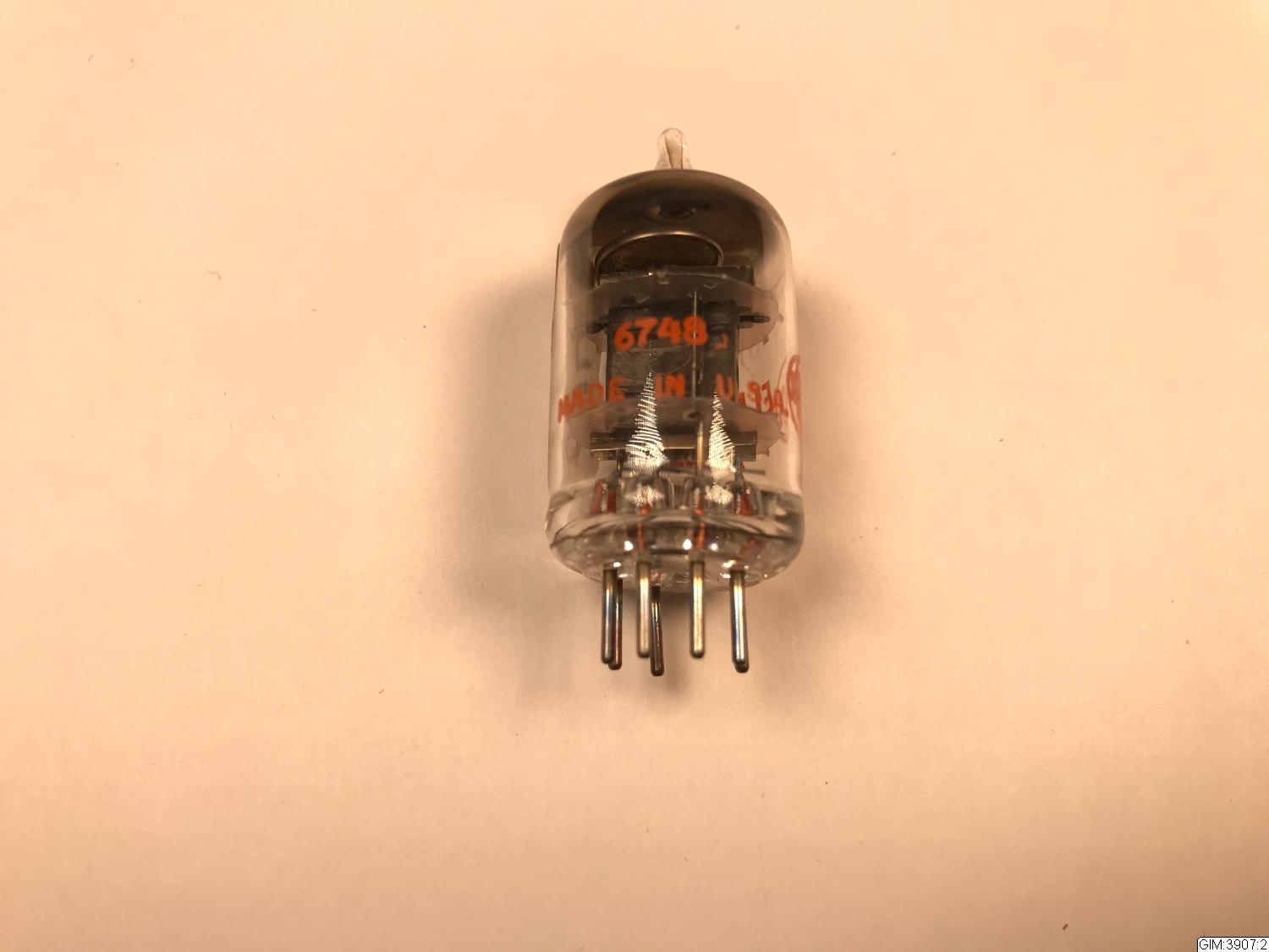 Elektronisk komponent av typ triod som kan förstärka svaga signaler. Glaskolven är märkt: ELECTRON TUBE. Ca 300 st i låda. Varje rör är 70 mm långt, med en diameter på 25 mm.