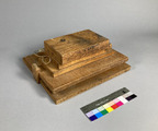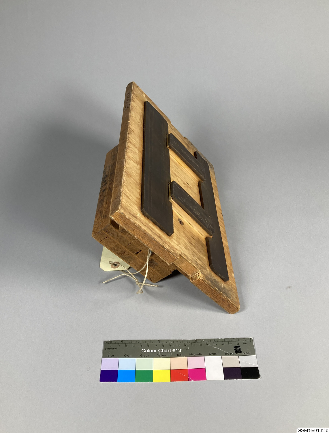 • press med gummi lagt i stegform limmat på en platta. På opvansidan limmade trästycken somvikt och "handtag"