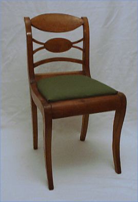 • transparant ytbehandlad björkstol. Lös, stoppad sits.