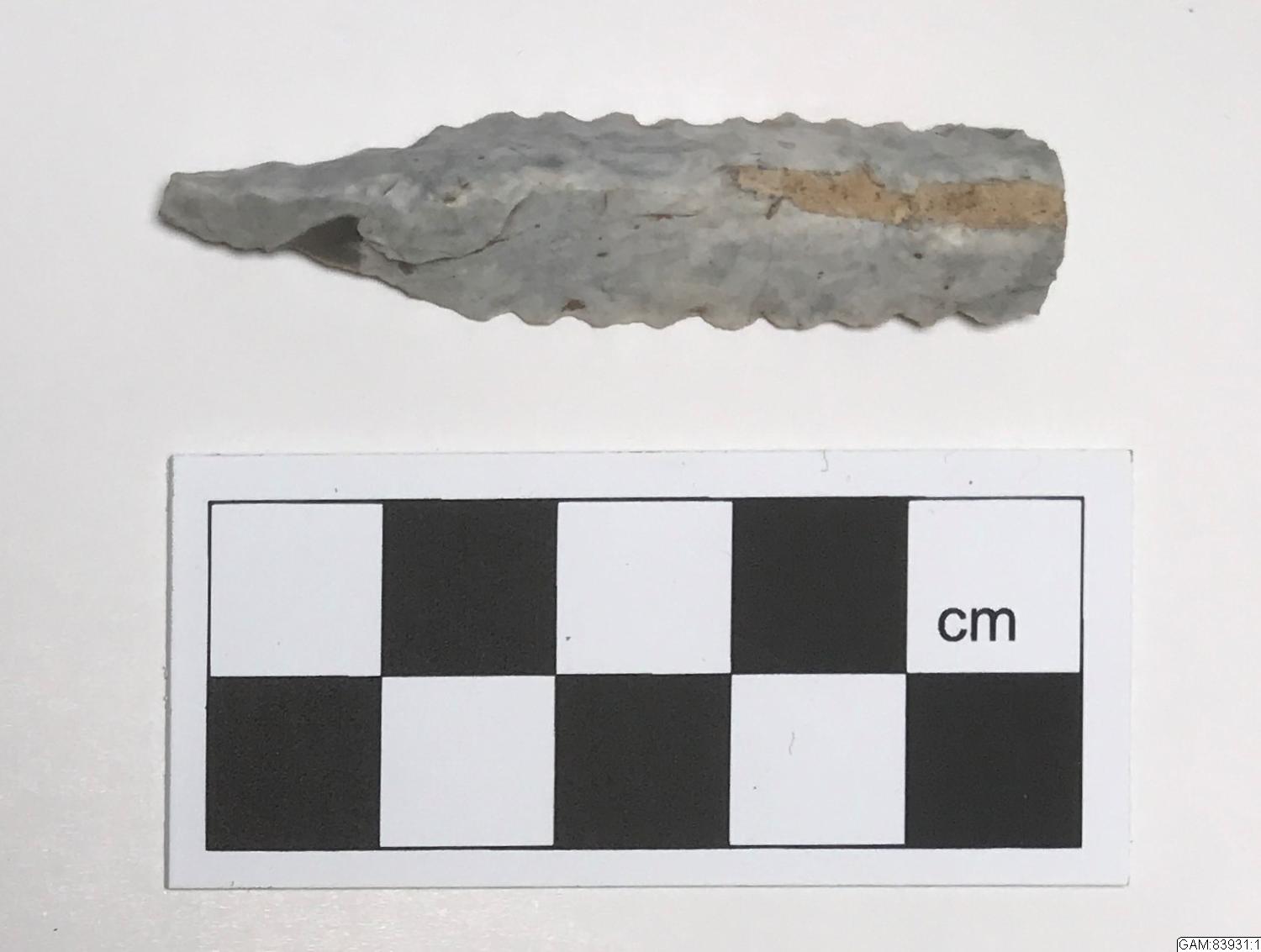 spånpilspets, spånpilspets med tånge, fragmentarisk