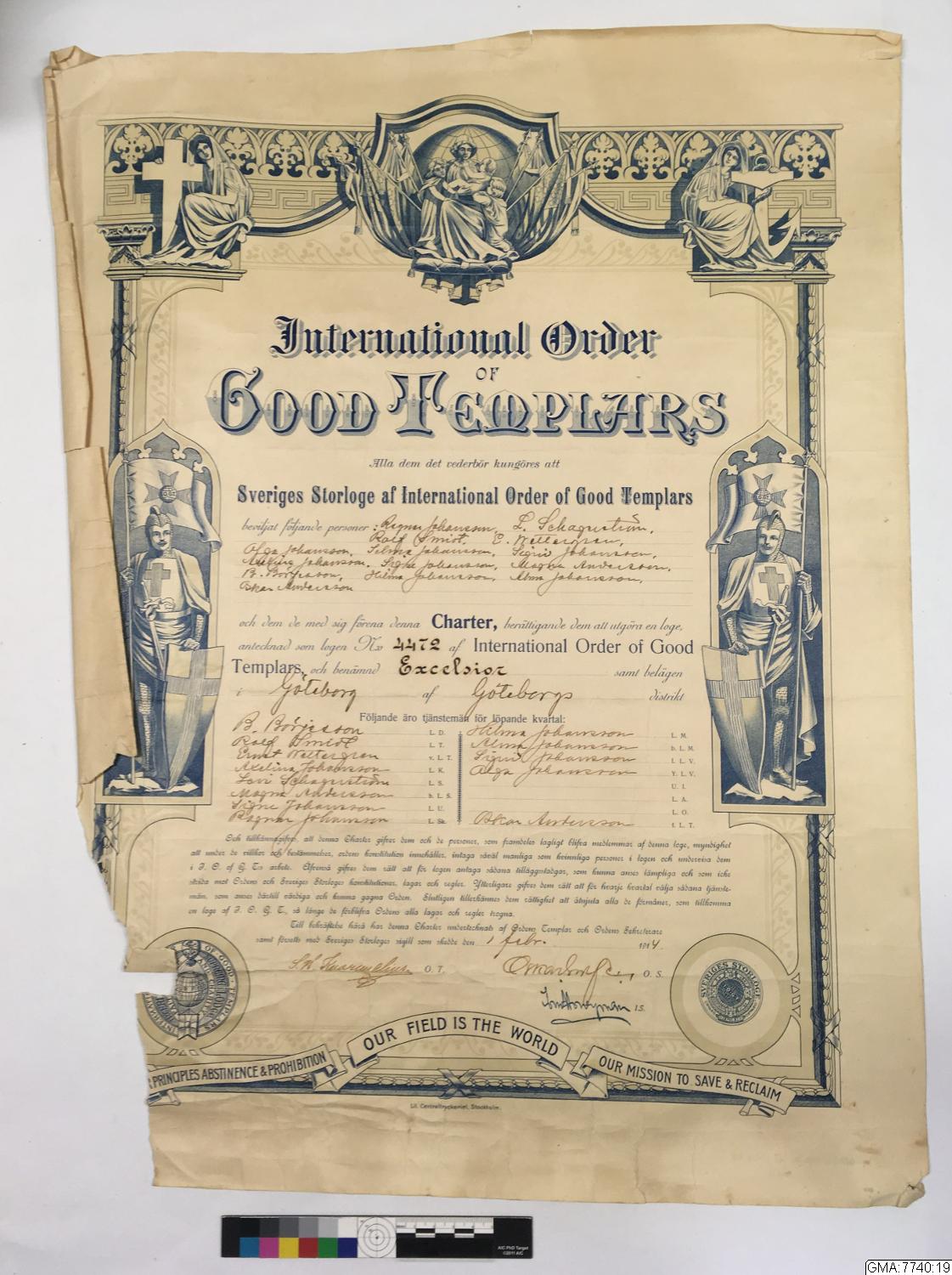 • Charter, 'Independent Order af Good Templars' utfärdad 1 februari 1914
