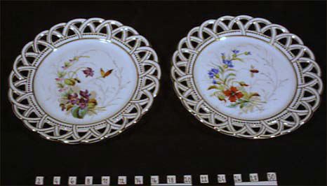 • dessert- eller frukttallrik som Fanny Broberg f. Grén förvärvat efter tullförvaltare Ferdinand Stockenberg vid dennes frånfälle 1893.