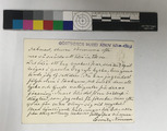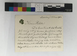 Kort med meddelande 25/3 1902 till Hilda Lundström, född Prytz (jfr 1. ovan), från författarinnan och målarinnan Emily Nonnen (22/2 1812 - 14/1 1905) på Liseberg att hon ej kan komma närvara vid Hilda L:s dotter Agnes bröllop.