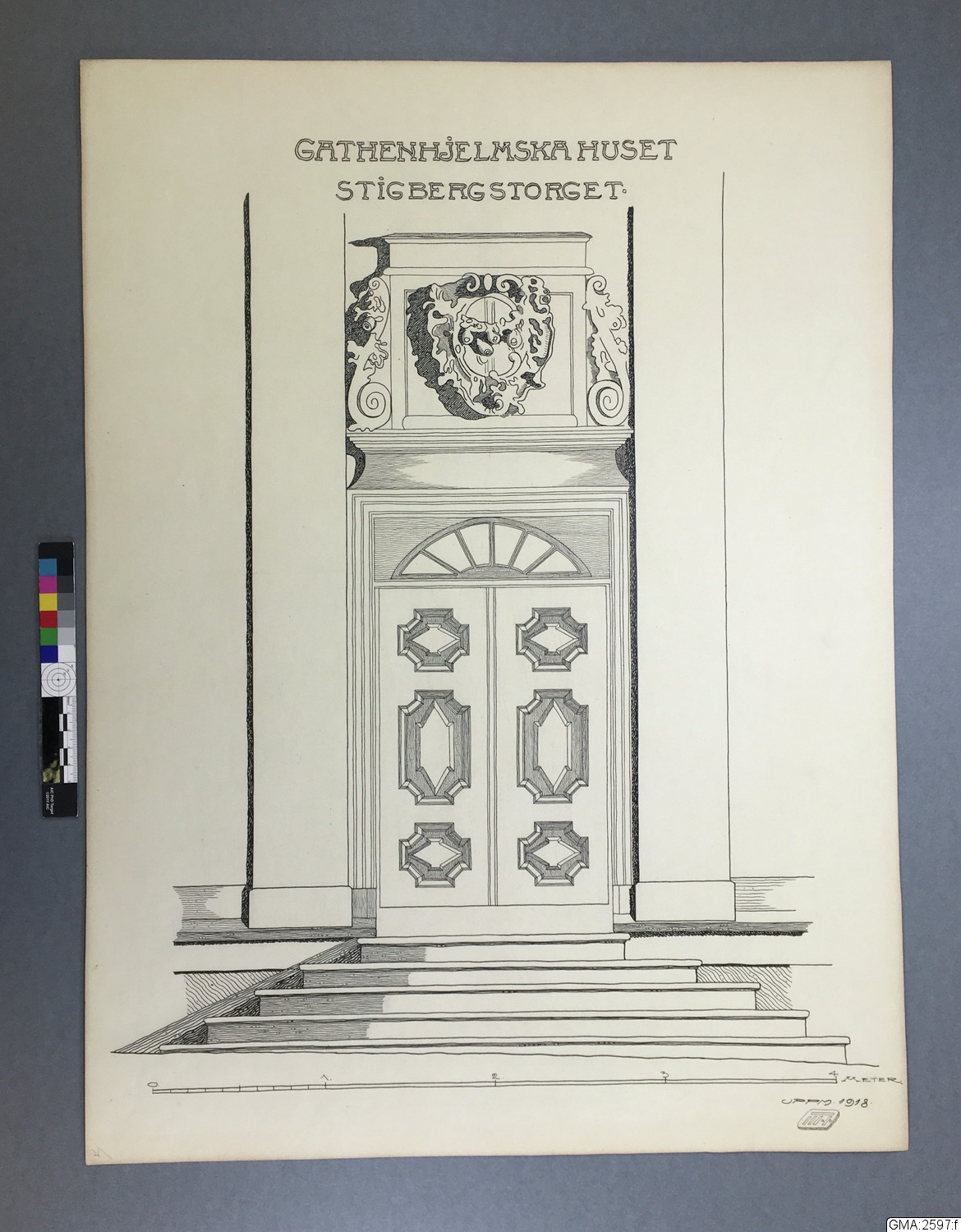 Gathenhjelmska huset Stigbergstorget. Uppm. 1918. M.E. Trysén [ritningen]