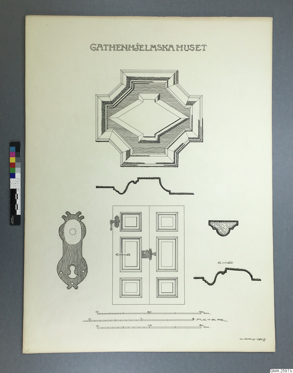 Gathenhjelmska huset Stigbergstorget. Uppm. 1918. M.E. Trysén [ritningen]