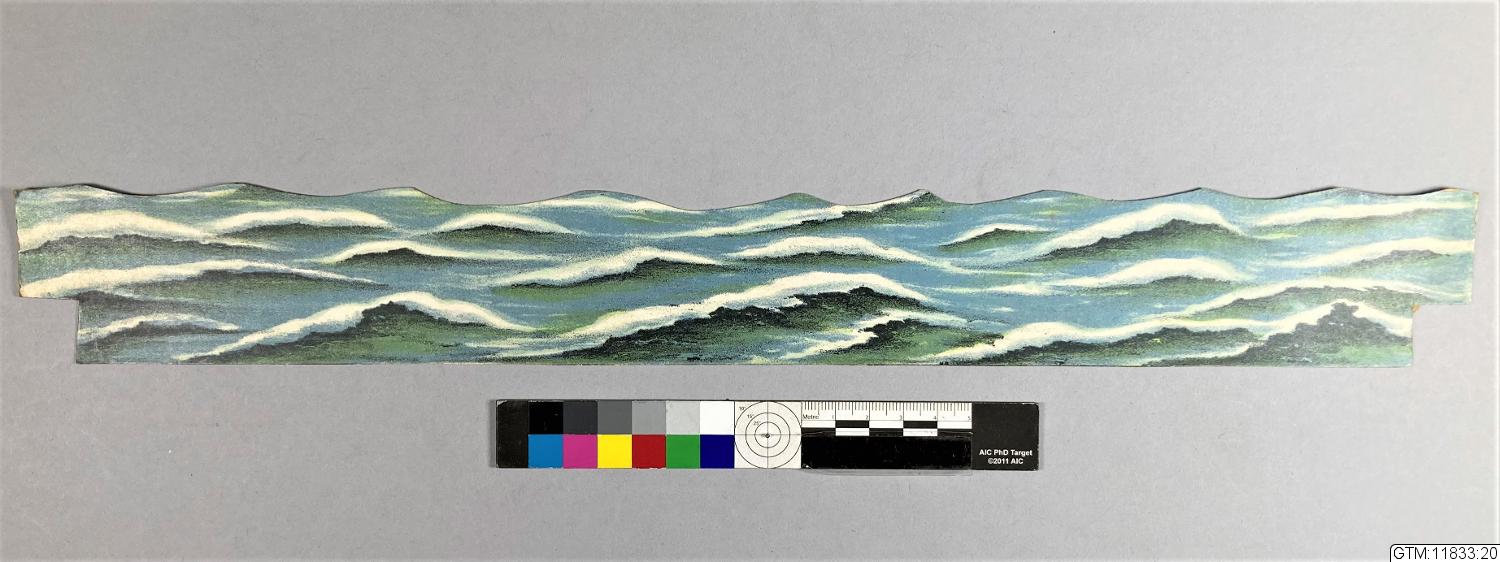 • teaterkuliss utskuren i kartong. Visar hav med vågor.