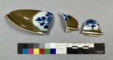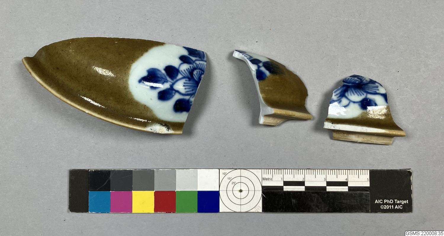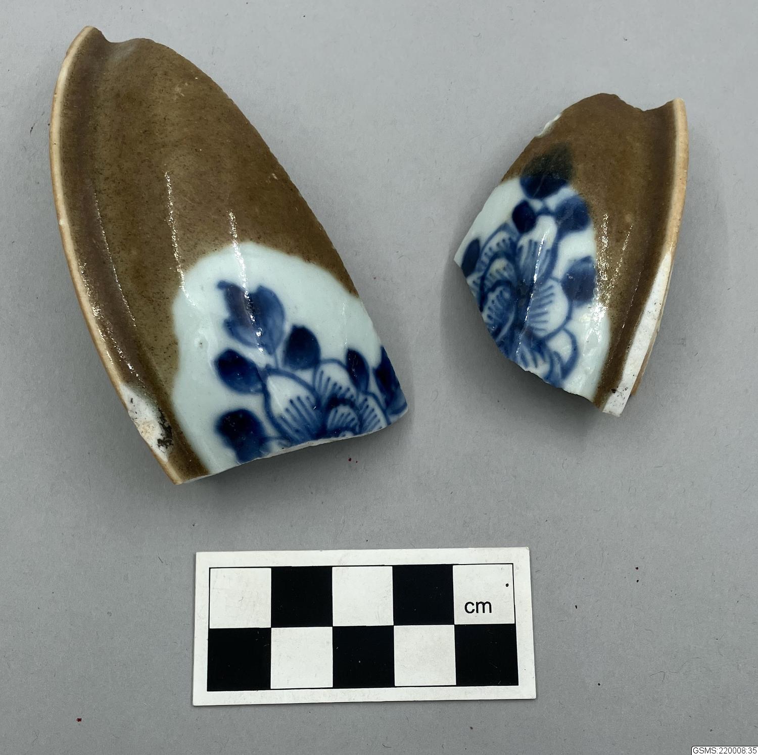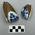 • Målade blommor i ursparningar i cafe au lait-glasyr