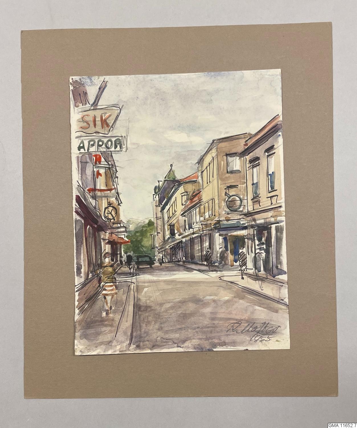 • Korsgatan mot norr, korsande gatan är Drottninggatan. I fonden Brunnsparken.