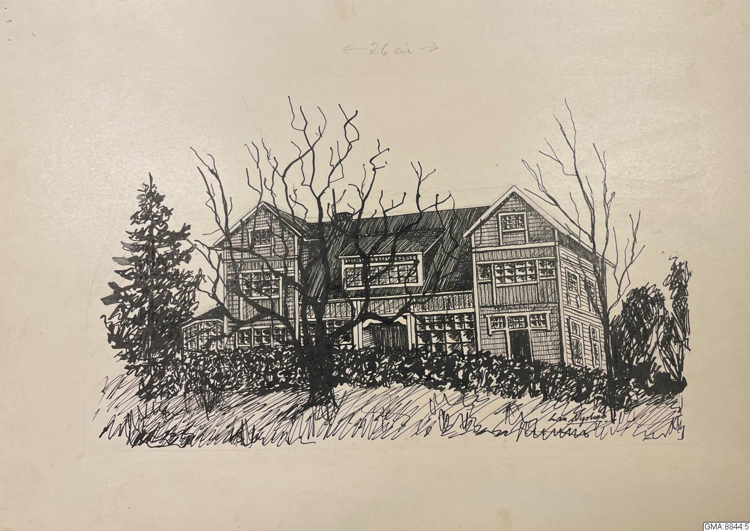 Villa "Min lilla vrå". Uppfördes av grosshandlare Setterberg på 1860-talet. (Enligt uppgift 1:sta avstyckningen från stamgården Arendal; i detta fall finnes motstridande uppgifter om att avstyckningen skulle skett från mark som redan år 1790 avstyckats från gården Arendal.) Senare ägare bl.a. Dr Virseen. [konstnärens text]