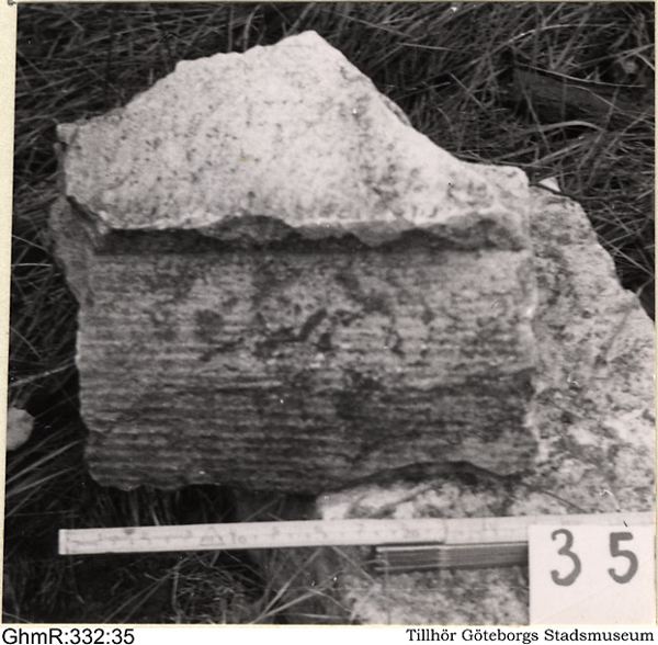 • Gamla Älvsborgs ruin. Lösfunnet huggstensfragment.