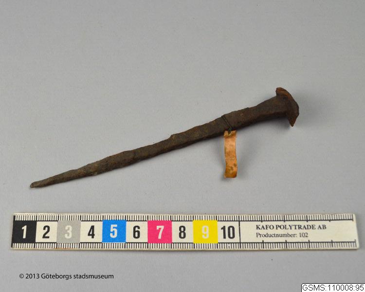 • Spik av smitt järn. Längd 11 cm. [enl. katalogkort]