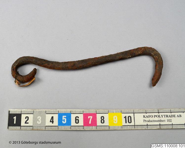 • Hasp av smitt järn. Längd 12.5 cm. Se protokoll av den 21 juni 1915. [enl. katalogkort]