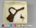 • "Beslag av järn. Med hank. Till gryta el. dyl. L. 10.9 cm, Br. 4.6 cm." [enl. katalogkort]