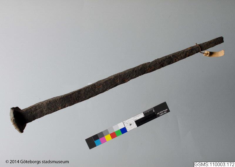 • Spik af smitt järn. L: 20 cm, B: 2.6 cm. [ur katalogkort]