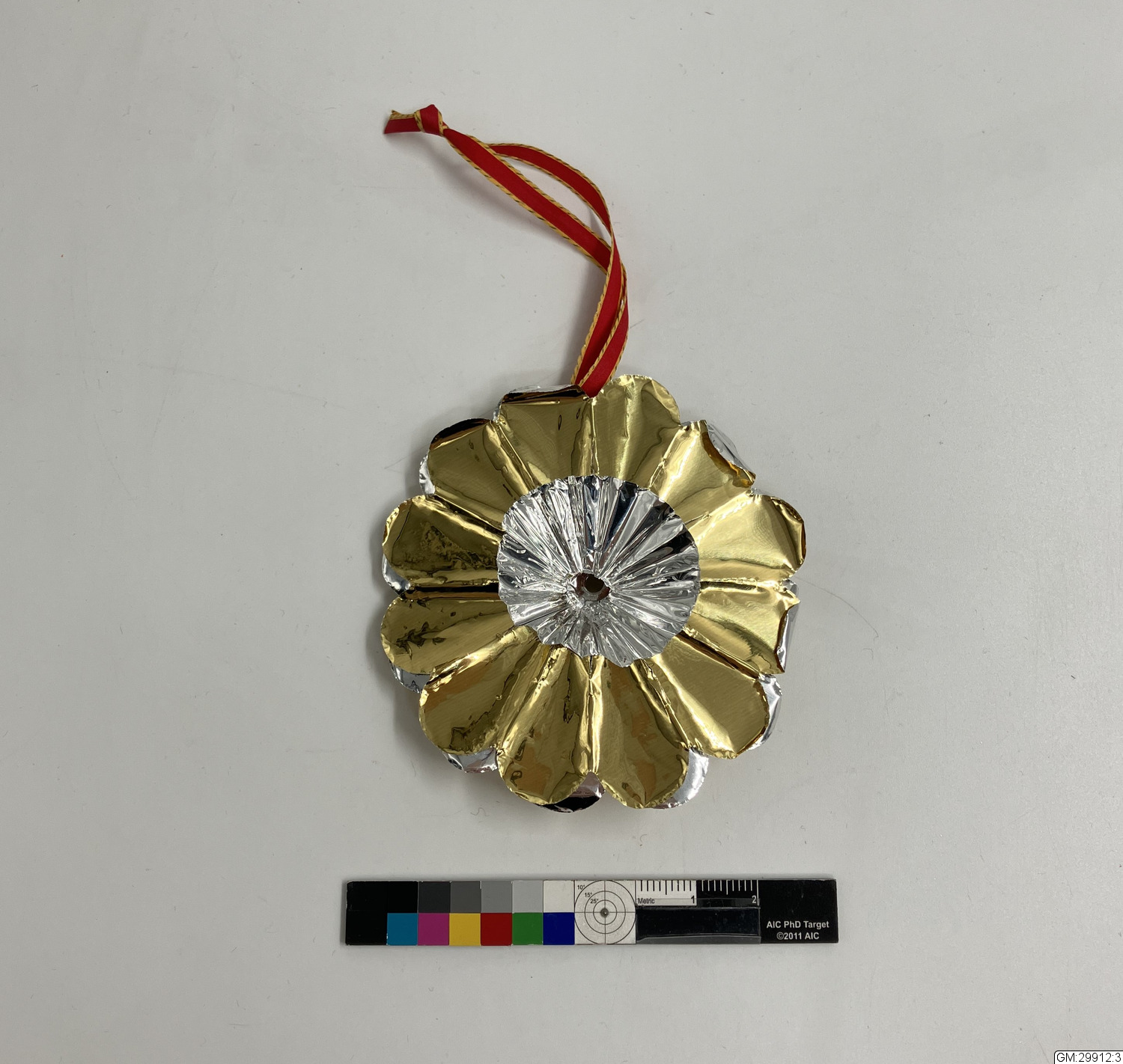 • GM:29912:1-4 består av 4 st olikfärgade "blommor" av staniol