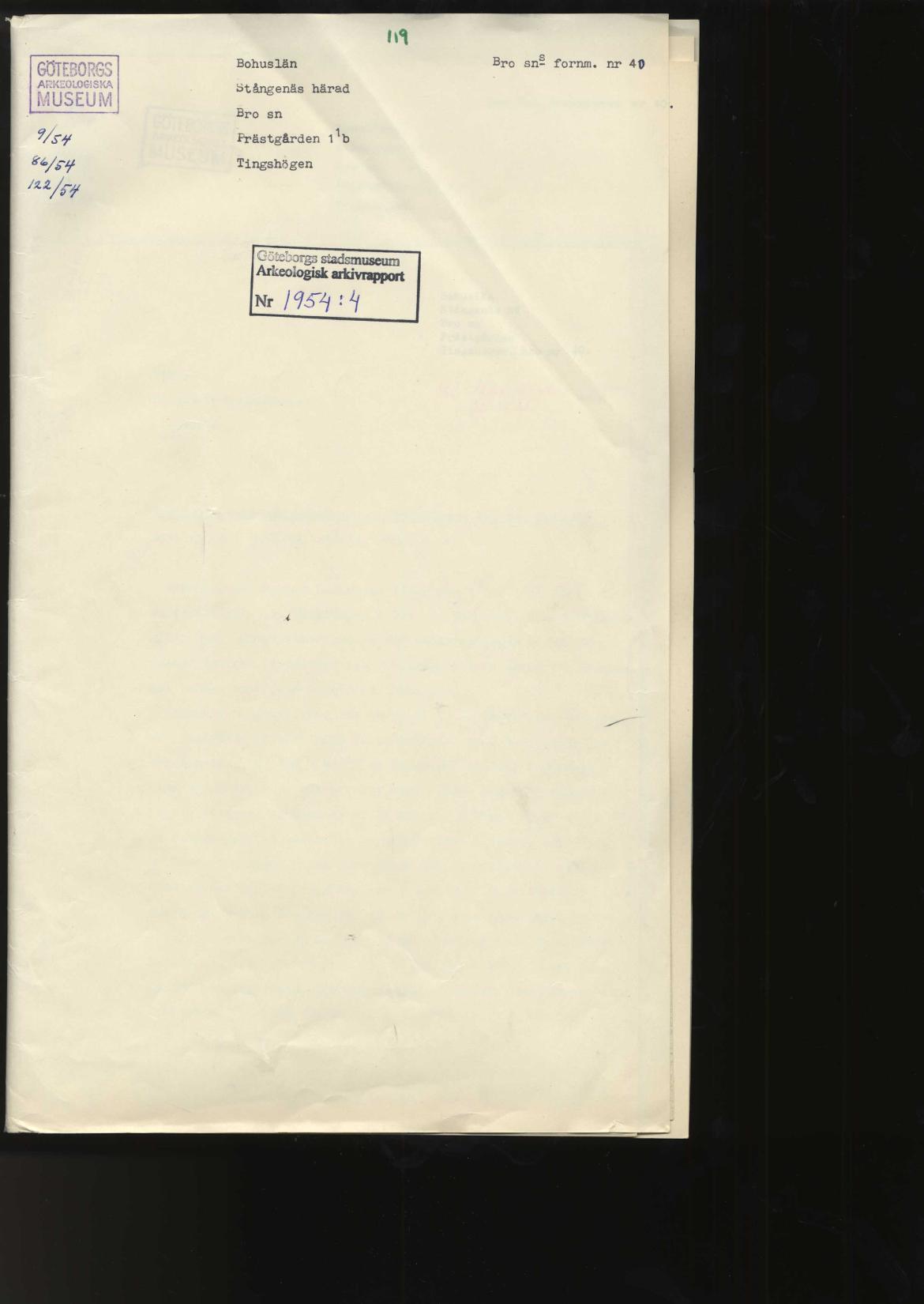 arkeologisk rapport, rapport, Berättelse över undersökning av Tingshögen, Bro sn, Bohuslän.