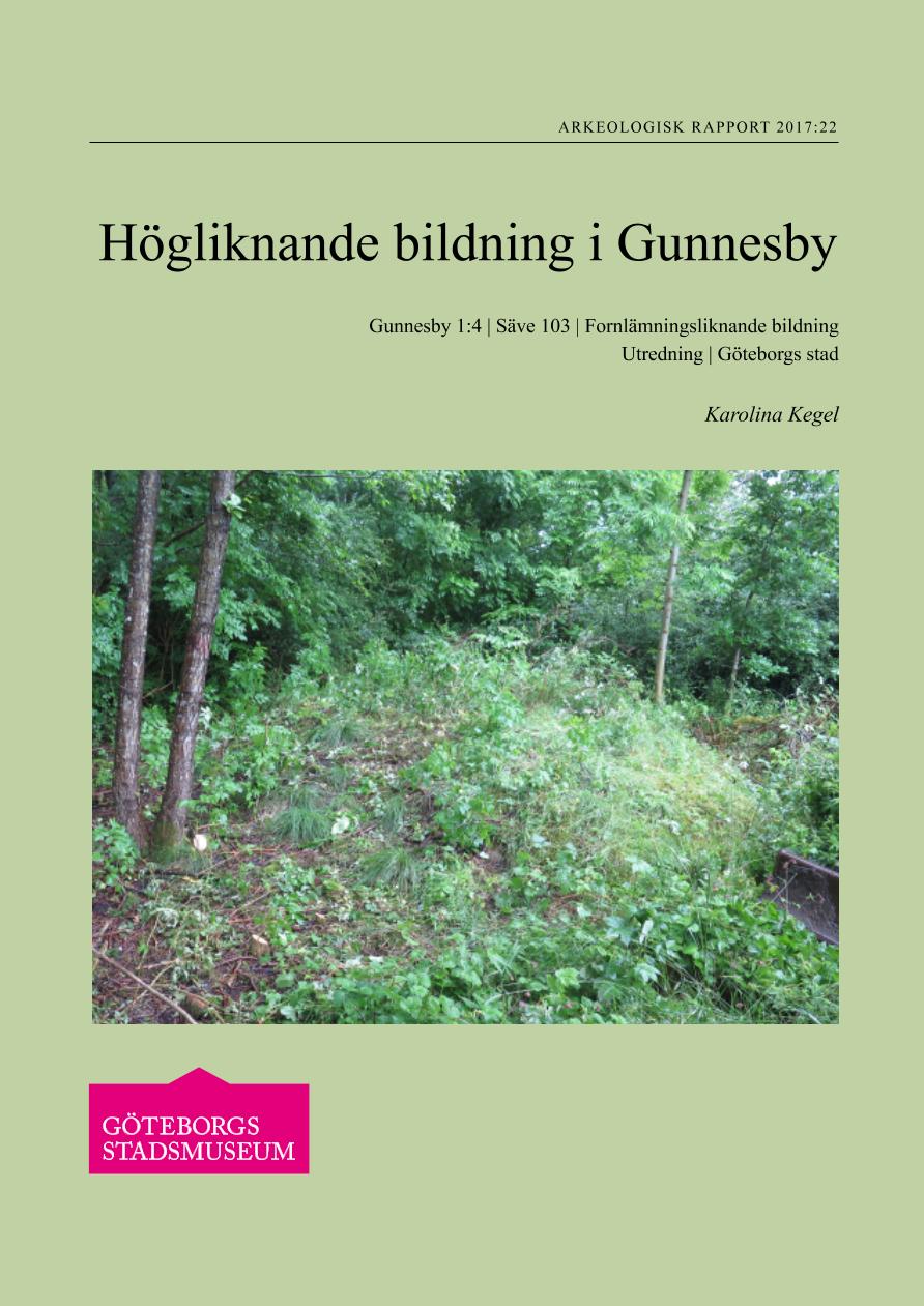 rapport, arkeologisk rapport, arkivalier, Högliknande bildning i Gunnesby : Gunnesby 1:4, Säve 103 : Fornlämningsliknande bildning : Utredning : Göteborgs stad