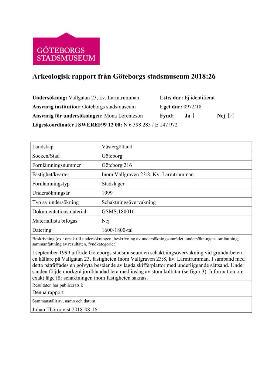 arkeologisk rapport, rapport, arkivalier, Arkeologisk rapport 2018:26